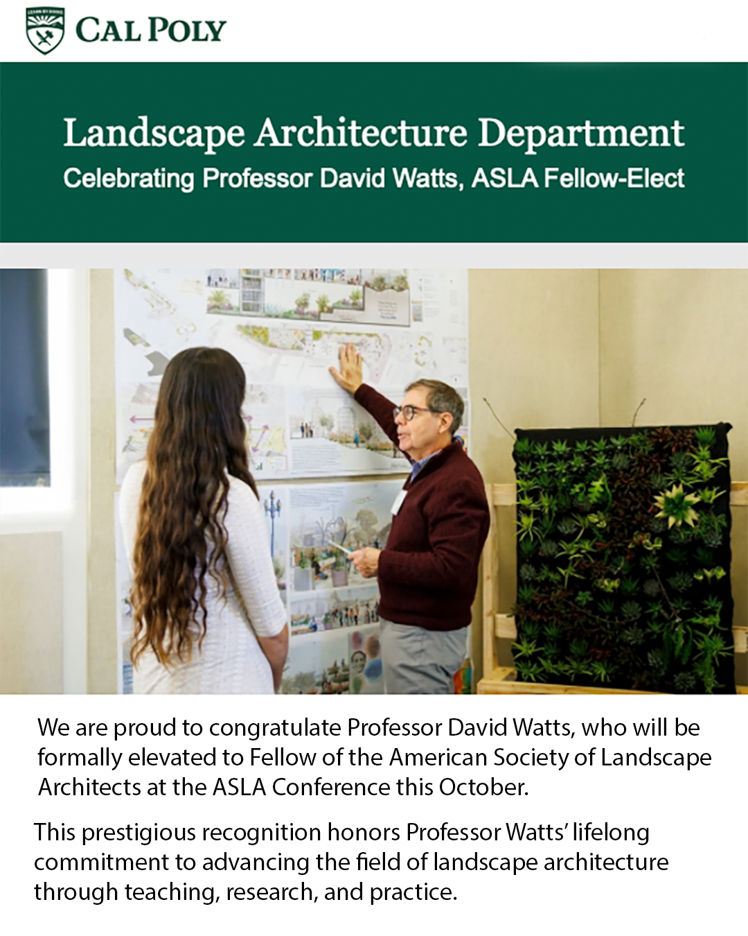 If you can’t make it but still want to support the landscape architecture program, please visit our Giving page. If you would like to help sponsor this event, please contact landscapearchitecture@calpoly.edu.