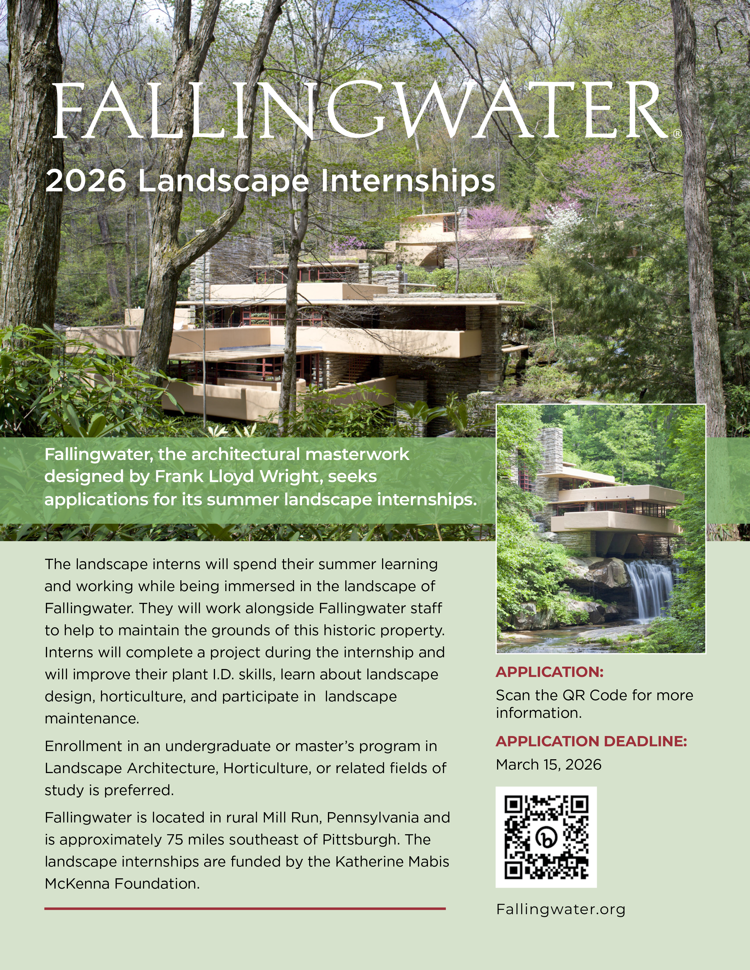 This page is for paid internship opportunities in Landscape Architecture. To have your internship opportunity posted, please fill out our Job Board Submittal Form.